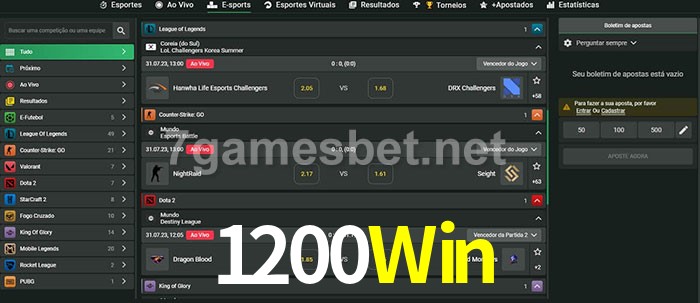 O 1200Win oferece uma grande seleção de opções de apostas em e-sports com probabilidades competitivas